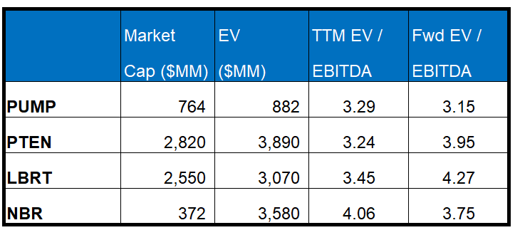 PUMP is currently trading at an EV/EBITDA multiple of 3.3x. Based on sell-side analysts’ EBITDA estimates, the forward EV/EBITDA multiple is 3.2x. The current multiple is below its five-year average EV/EBITDA of 4.7x.